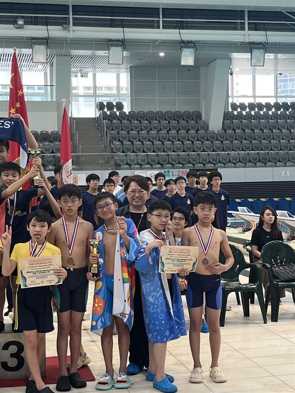 2025-10-10 主辦:東華三院李潤田紀念中學本校獲東華三院李潤田紀念中學邀請於10月10日參加東華三院李潤田紀念中學55周年校慶水運會「小學組接力比賽」,本校游泳隊隊員除寓操於賽外,亦取得獎項和豐富的紀念品,可說滿載而歸。4 X 50M 自由式接力 男子組 殿軍鄭嘉豪 5B劉宗安 5C劉安東 5E鍾駿熹 6B李晉瑋 4C 所有網站更新 體育