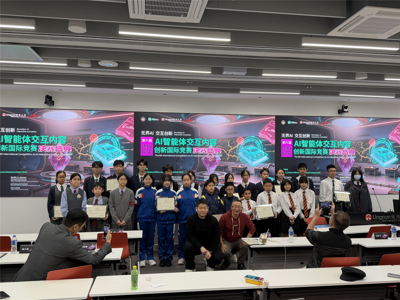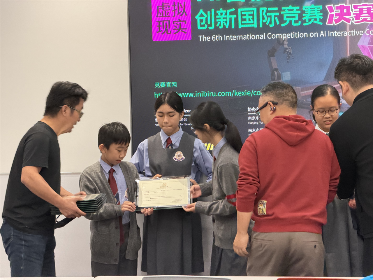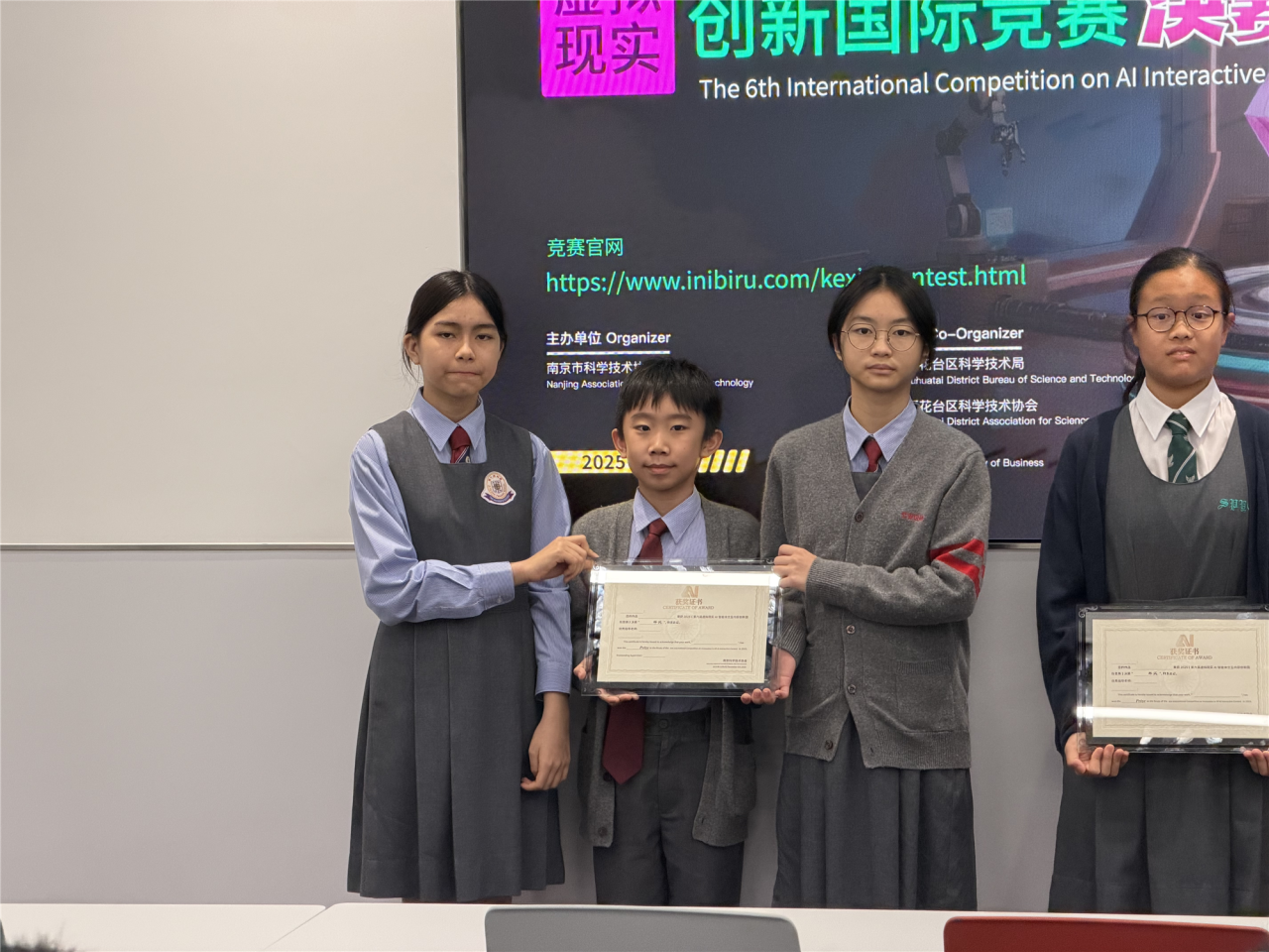 2025-12-06 主辦:南京市科學技術協會主辦、香港嶺南大學商學院協辦本校6B李書羽、6C方富恆及韓穎琳同學參與由南京市科學技術協會主辦、香港嶺南大學商學院協辦的全國性STEAM比賽《第六屆虛擬實境AI智慧體交互內容創新國際競賽》,於2025年12月6日在南京與香港兩地同步連線共同舉行的決賽盛典中進行作品展示,與來自全國超過150隊的大學及中小學隊伍較勁。本校作品於比賽中獲得三等獎。三等獎李書羽 6B方富恆 6C韓穎琳 6C 所有 學術