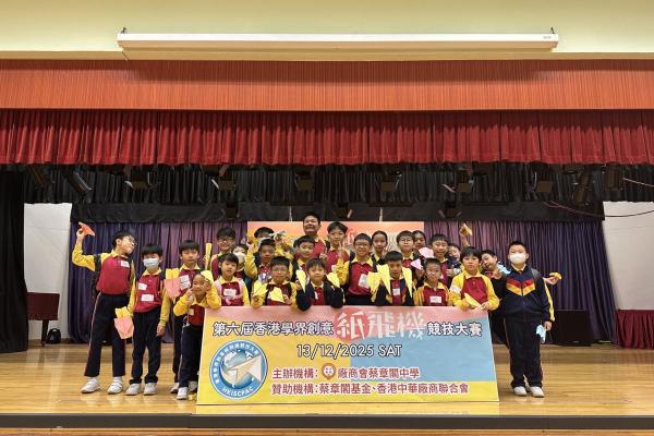 2025-12-13 主辦:廠商會蔡章閣中學主辦本校鼓勵學生發掘多項有關飛行的STEAM知識,以輕鬆有趣的主題引起學生學習興趣。本校有28位同學於2025年12月13日參加由廠商會蔡章閣中學主辦的第六屆香港學界創意紙飛機比賽,挑戰「飛行距離最遠」、「回力飛行挑戰」及「滯空時間最長」的奬項。 所有 學術