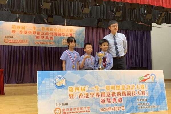 2023-12-16 主辦:廠商會蔡章閣中學參加由廠商會蔡章閣中學主辦的第四屆香港學界創意紙飛機競技大賽,2A陳炯城、張梓軒、3D王善童獲得飛行距離最遠(初小組)亞軍;4C方富恆、6B梁家豪、梁頌恩獲得飛行距離最遠(高小組)亞軍;3D李沐傑獲得紙飛機造型設計及創意故事演繹(初小組)殿軍。紙飛機造型設計及創意故事演繹(初小組) 殿軍李沐傑 3D飛行距離最遠(高小組) 亞軍方富恆 4C梁家豪 6B梁頌恩 6B飛行距離最遠(初小組) 亞軍陳炯城 2A張梓軒 2A王善童 3D 所有 學術