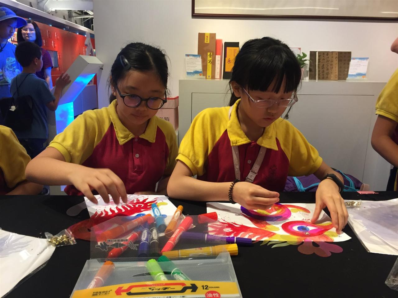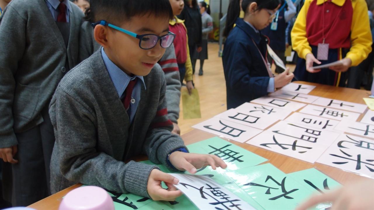 本校參加了由「中華出版促進會漢字文化推廣專業委員會與饒宗頤文化館」合辦的「活字生香—漢字的世界世界的漢字」漢字文化體驗展。展覽以漢字結合當下生活,透過創新的互動軟件,讓學生學習相關的知識和內容。如圖片所見,學生正在製作甲骨文皮影戲,並用此表演故事。